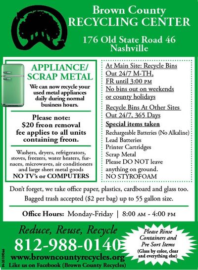 Office and outside recycling bins. Drive-thru recycling is not available. These bins are available 24/7 M/T/W/Th then taken down 3pm the day before weekends/holidays.
